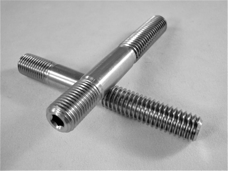 We make these studs from 140Ksi Titanium alloy. They have a course thread on one end and fine thread on the other.
