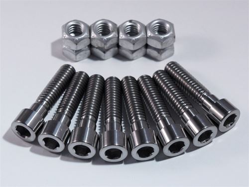 This Kit contains (8) 5/16"-18 x 1-1/4" Titanium Socket Head Screws, (8) 5/16" Thin Steel AN Washers, and (8) 5/16"-18 All Metal Steel Lock Nuts.