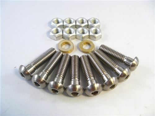 This Kit includes (8) 5/16"-18 x 1" Titanium Button Head Screws, (8) 5/16" Thin Steel AN Washers, and (8) 5/16"-18 All Metal Steel Lock Nuts.