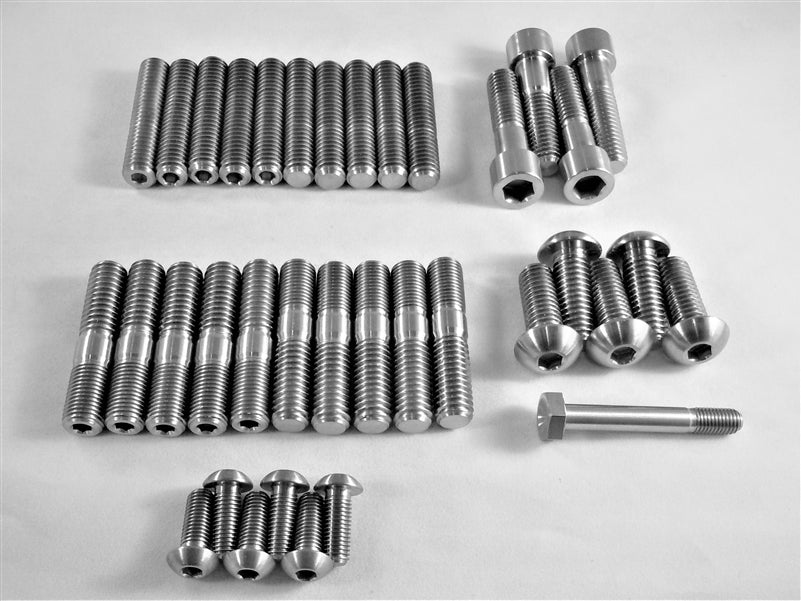 This Ultimate All Titanium Midget Pro Eliminator Rear End Kit includes (10) Side Cover Studs, (10) Rear Cover Studs, (6) Rear Cover Bearing Cover Bolts, (4) Shifter Housing Socket Screws, (5) Pinion Retainer Screws, and (1) Shift Arm Bolt.