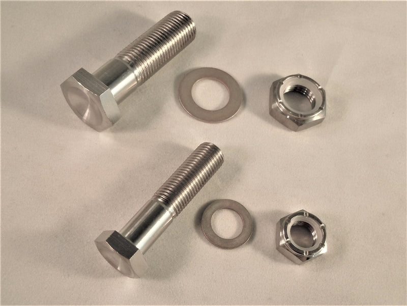 This Kit contains (1) Titanium 1/2"-20 x 1-3/4" Hex Head Bolt, (1) 1/2"-20 Titanium Half Height Nylon Insert Lock Nut, (1) Titanium 3/8"-24 Half Height Nylon Insert Lock Nut, (2) Steel 1/2" Flat Washers, (2) Steel 3/8" Flat Washers, and (1) Titanium 3/8"-24 x 1-5/8" Hex Head Bolt.