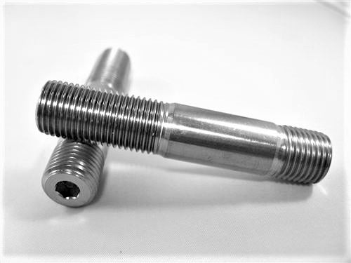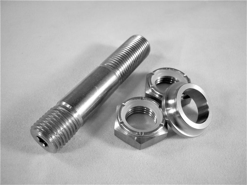 This Steering Stud Kit includes (1) 1/2"-20 x 2.55” Allen-Keyed Titanium Stud, (2) 1/2"-20 Titanium Half-height Nylon Insert Lock Nuts and (1) 1/2" x 0.225" Titanium Spacer. Another Ti64 Exclusive.