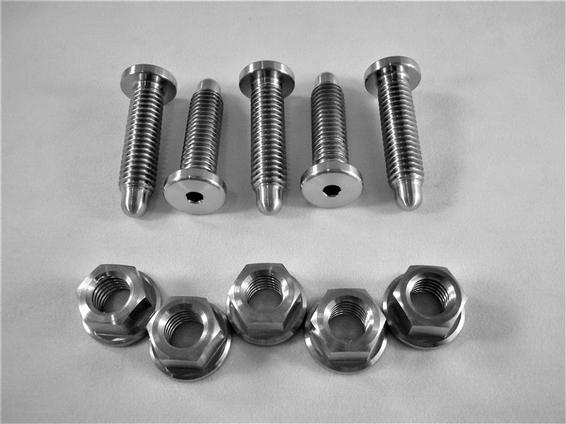 This Kit contains (5) 3/8"-16 x 1.25" Titanium Low Profile Button Head Wheel Studs and (5) 3/8"-16 Titanium Hex Flange Nuts.